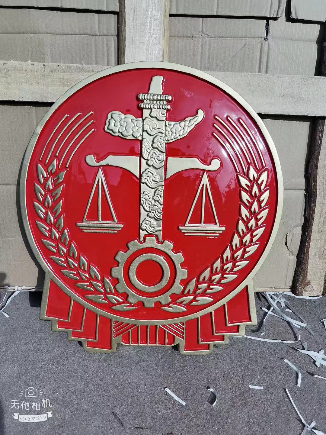安装方式 | 福建法徽生产厂家-小徽章背面都配有穿挂耳孔,钉子钉在墙上,再用穿铁丝钢丝,适合安装在办公室/会议室会场等。大徽后面为膨胀螺丝孔,安装需要定做铁架,铁架固定墙面上后,再将徽章固定在铁架上。玻璃幕墙也是需要铁架方式安装。 |