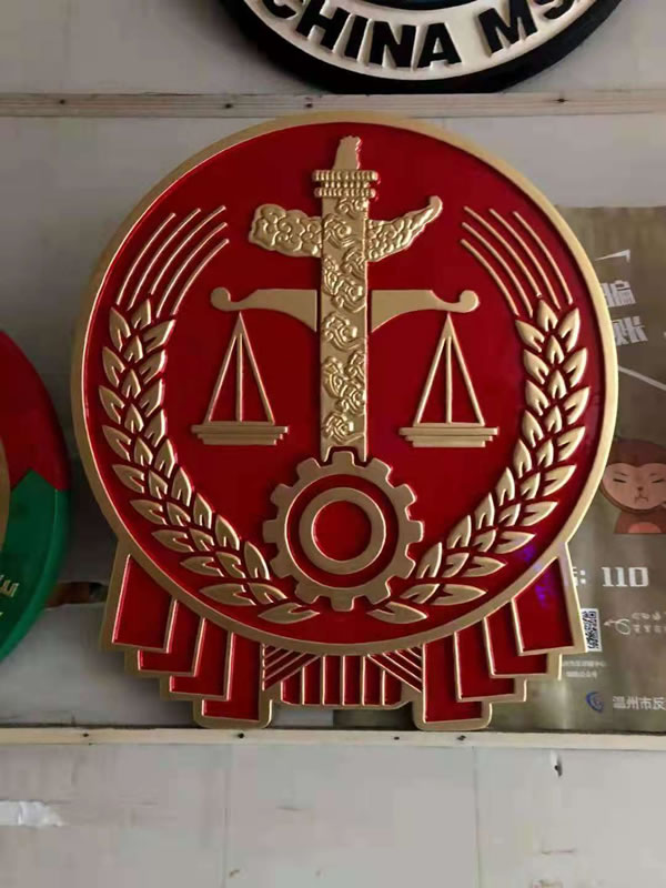 | 安装方式 | 福建法徽定做-小徽章背面都配有穿挂耳孔,钉子钉在墙上,再用穿铁丝钢丝,适合安装在办公室/会议室会场等。大徽后面为膨胀螺丝孔,安装需要定做铁架,铁架固定墙面上后,再将徽章固定在铁架上。玻璃幕墙也是需要铁架方式安装。 |