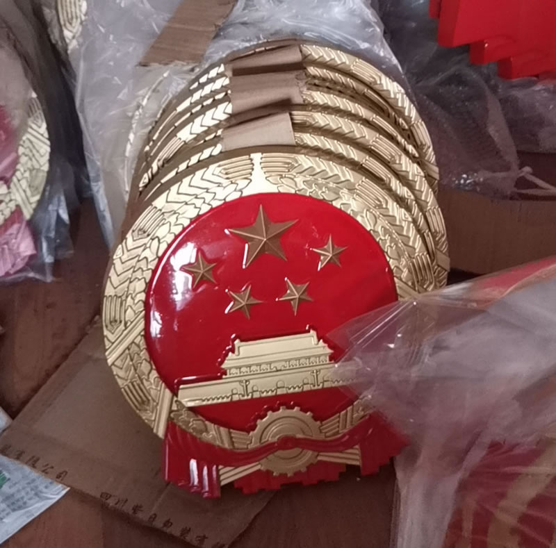 | 安装方式 | 福建小国徽现货-小徽章背面都配有穿挂耳孔,钉子钉在墙上,再用穿铁丝钢丝,适合安装在办公室/会议室会场等。大徽后面为膨胀螺丝孔,安装需要定做铁架,铁架固定墙面上后,再将徽章固定在铁架上。玻璃幕墙也是需要铁架方式安装。 |